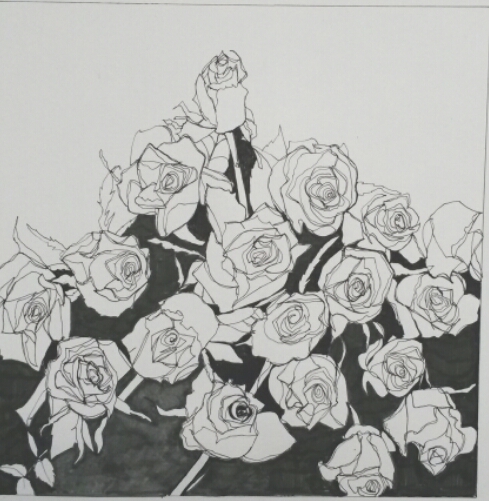 Through these studies I became more confident drawing roses. I grew to love the circular patterns the petals form and the rhythm and repetition.