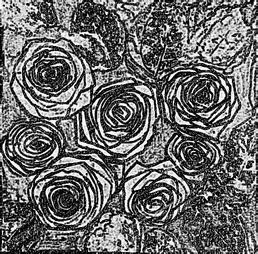 I liked this result, so tried some more attempts. I think it worked because the petals on roses are often quite angular.