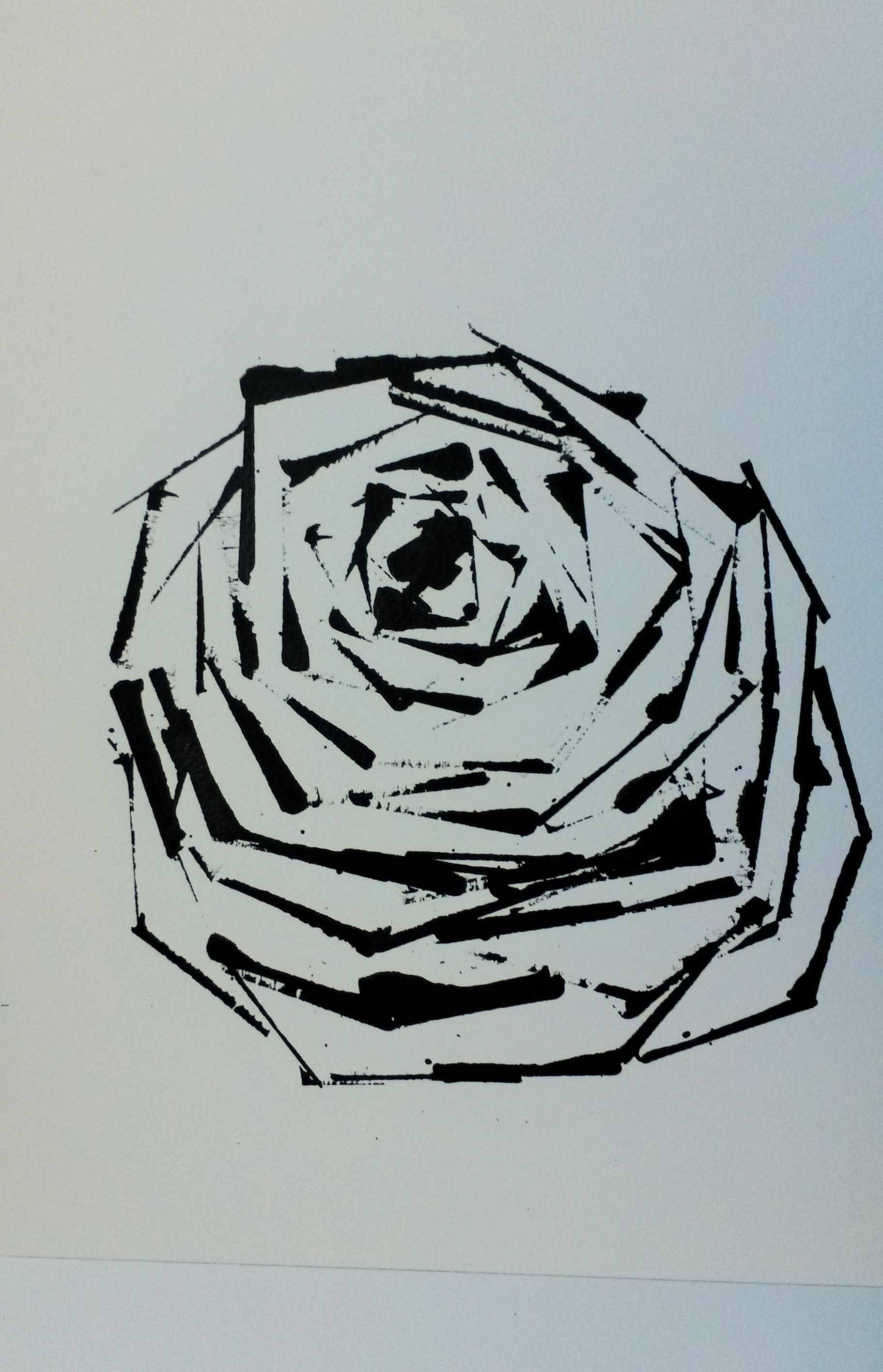 Although the brief is to draw a subject using a subject, I decided to try something a little different. I wondered whether it would be possible to draw something as delicate and intricate as a rose using something with the exact opposite qualities. I decided to draw a rose using only the straight lines of a credit card dipped in ink.