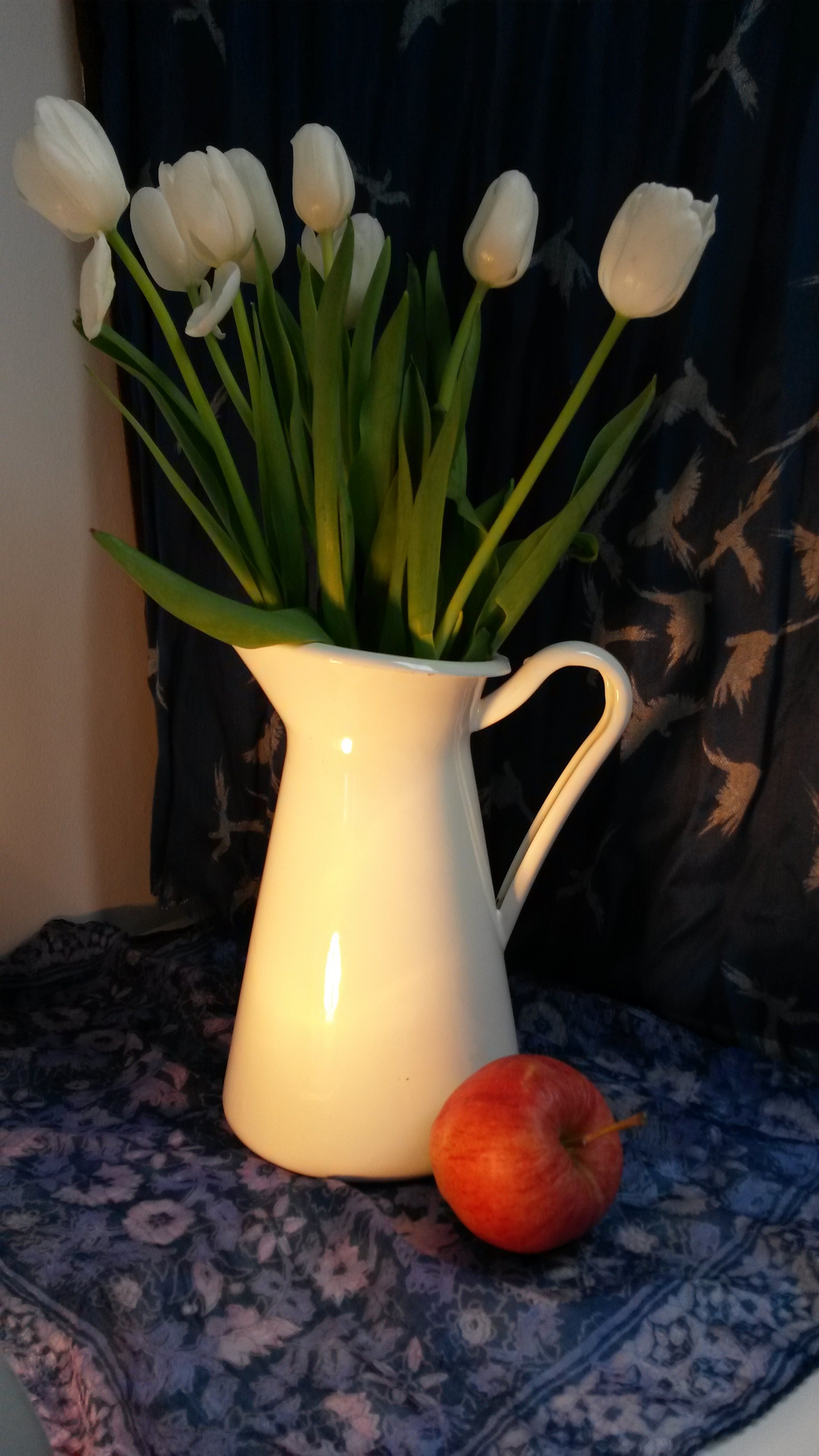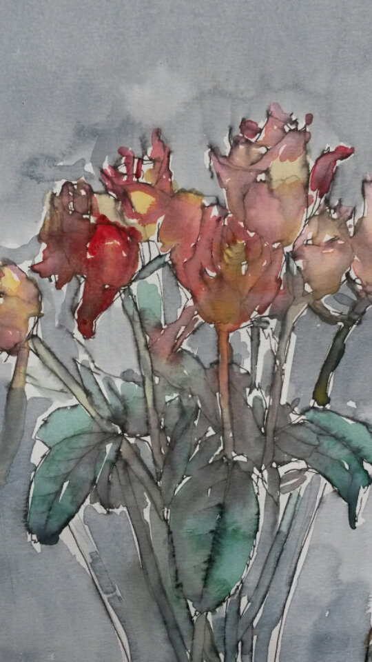 This was done in a similar way with tulip petals and leaves, with a similar, disappointing result.