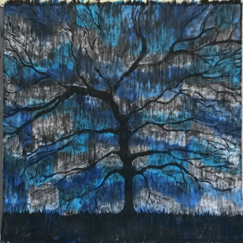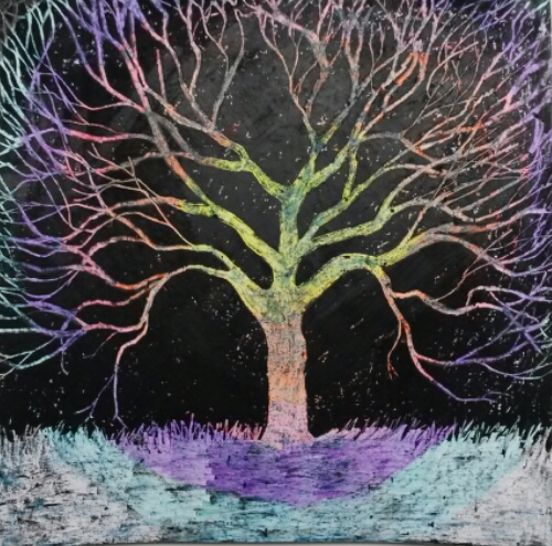 This was done using different coloured mail varnishes on black paper. Quite a nice result and one I may try again.